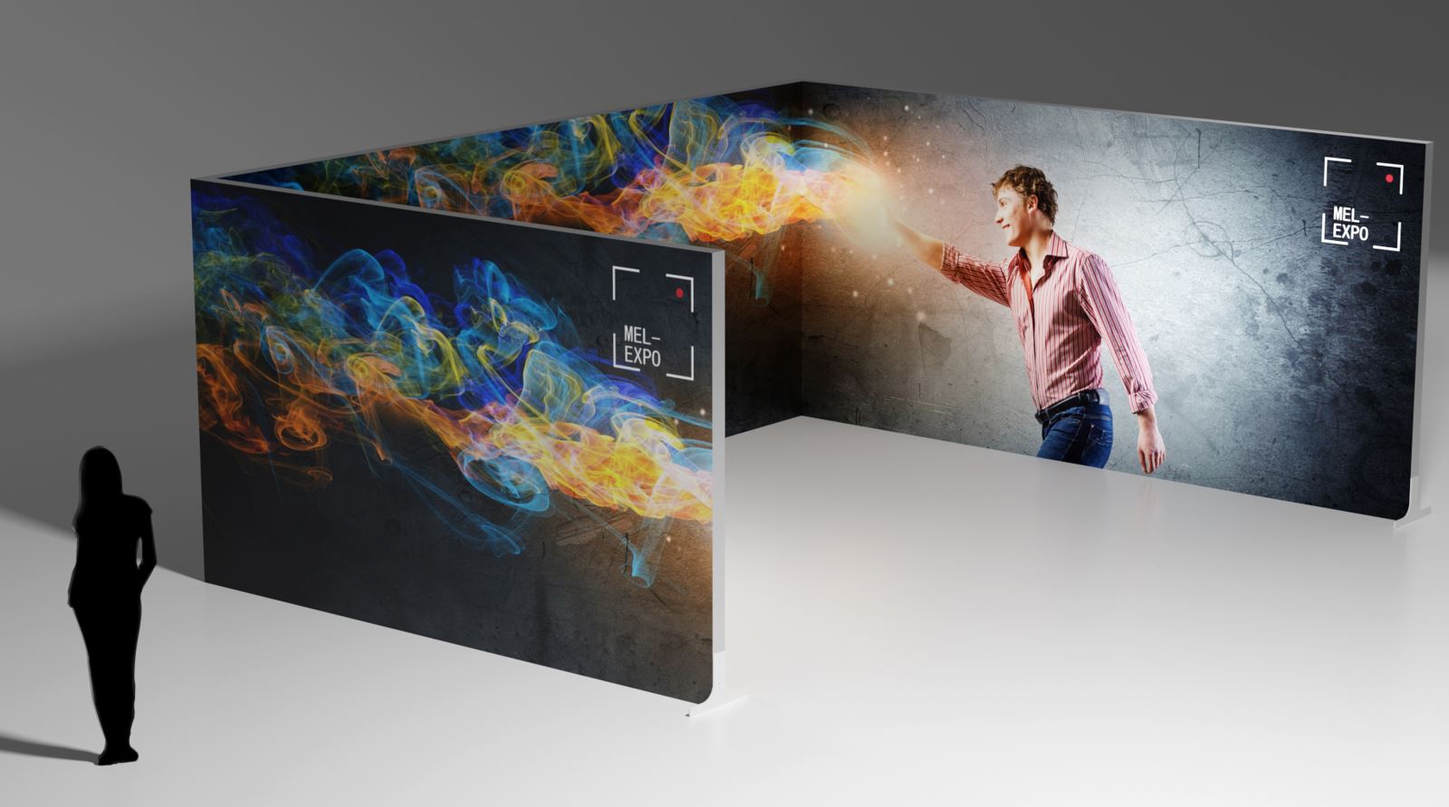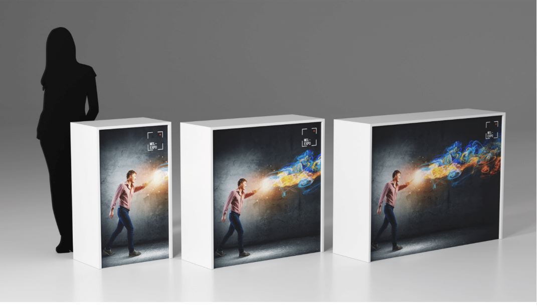 Nasze stoisko targowe modułowe Mel standard z jednostronnym wydrukiem whiteback i oświetleniem LED na wysięgniku to praktyczne i estetyczne rozwiązanie na każde targi. Jeśli chcesz zrobić jeszcze większe wrażenie, wybierz stoisko targowe modułowe Mel prestige z dwustronnym wydrukiem texilbacklight lub samba, który tworzy efekt lightbox. Dzięki oświetleniu LED i wydrukowi tyłu blackback zwrócisz na siebie uwagę i przyciągniesz spojrzenia targowych gości. Stoiska — z możliwością personalizacji — znajdują zastosowanie w szerokiej gamie wydarzeń komercyjnych i promocyjnych, takich jak targi, wystawy, konferencje czy promocje produktów. Ich modułowość pozwala na łatwą konfigurację przestrzeni wystawienniczej zgodnie z potrzebami, zapewniając elastyczność aranżacji, która najlepiej odzwierciedla charakter i przesłanie Twojej marki.